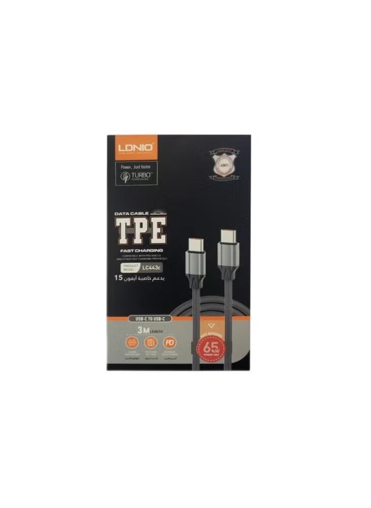 سلك شاحن تايب سي الى تايب سي 3M بي دي رمادي Ldnio